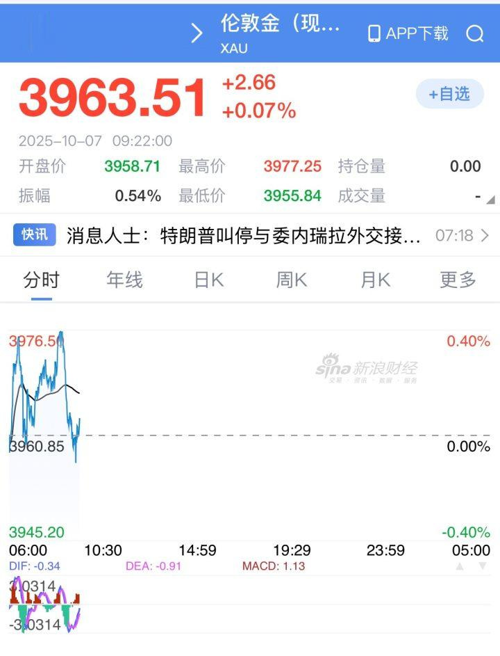 国庆长假期间股票配资门户网站,海外资本市场“精彩不断”。最受人关注的是,受美国政府“停摆”闹剧影响,伦敦现货黄金价格10月7日上午已经升破3960美元/盎司关口,最高触及3977.25美元/盎司,纽约期货黄金价格盘中首次突破4000美元/盎司,再度刷新历史新高。
